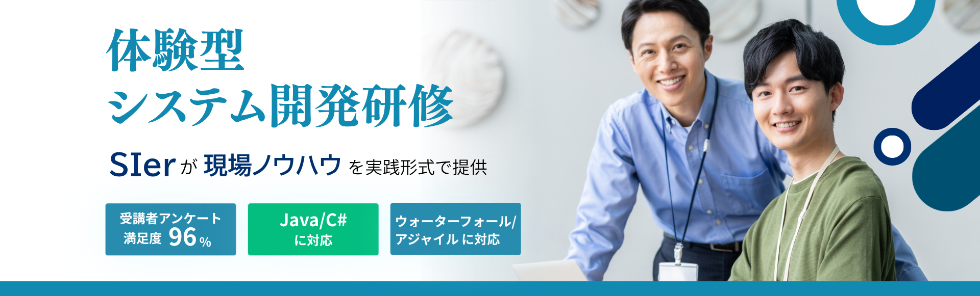 実際の開発現場を“リアルに再現”し、チームでシステム開発を進める演習形式の研修です。
